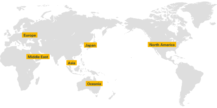ヨーロッパ中東アジア日本オセアニア北アメリカ